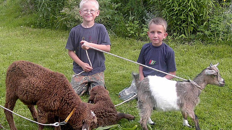 Natürlich dürfen die Kinder auch gerne bei der Stallarbeit mithelfen. Kinderaugen strahlen, wenn sie die Tiere streicheln, füttern und versorgen können.